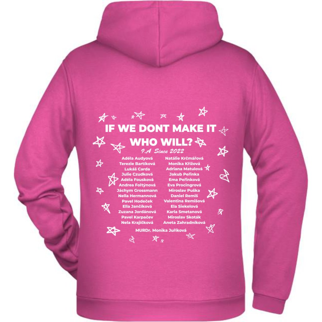 Mikina unisex - normální střih s kapucí - růžová - potisk ZŠ Mládeže 9.A